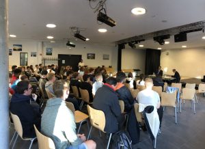 Teilweise argumentierte Schäfer-Gümbel sehr persönlich und gab Einblicke in innerparteiliche Entscheidungsprozesse oder familiäre Hintergründe. Er wies darauf hin, dass sein Ausstieg aus der Politik nach drei verlorenen Landtagswahlen durchaus auch als Eingeständnis eines Scheiterns gewertet werden könne, gleichgültig welche konkreten Gründe die jeweilige Wahlniederlage gehabt habe. Umso mehr freue er sich auf die für ihn persönlich anstehende berufliche Veränderung. Bei den Schülerinnen und Schüler, die die Gelegenheit zum unmittelbaren Kontakt und Austausch intensiv und kritisch nutzten, kam dies gut an: „Das war sehr angenehm, weil nicht belehrend oder gekünstelt, sondern unmittelbar und konkret“, meinte etwa eine angehende Abiturientin, die sich weitere solcher Veranstaltungen wünscht.