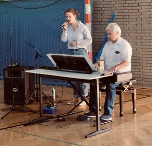 Ein musikalischer Höhepunkt der Einschulungsveranstaltung war der Auftritt der Schülerin Lavinia Baulig, die mit ihrem Gesang, begleitet von Herrn Eckhardt, der Veranstaltung einen feierlichen Rahmen verlieh.