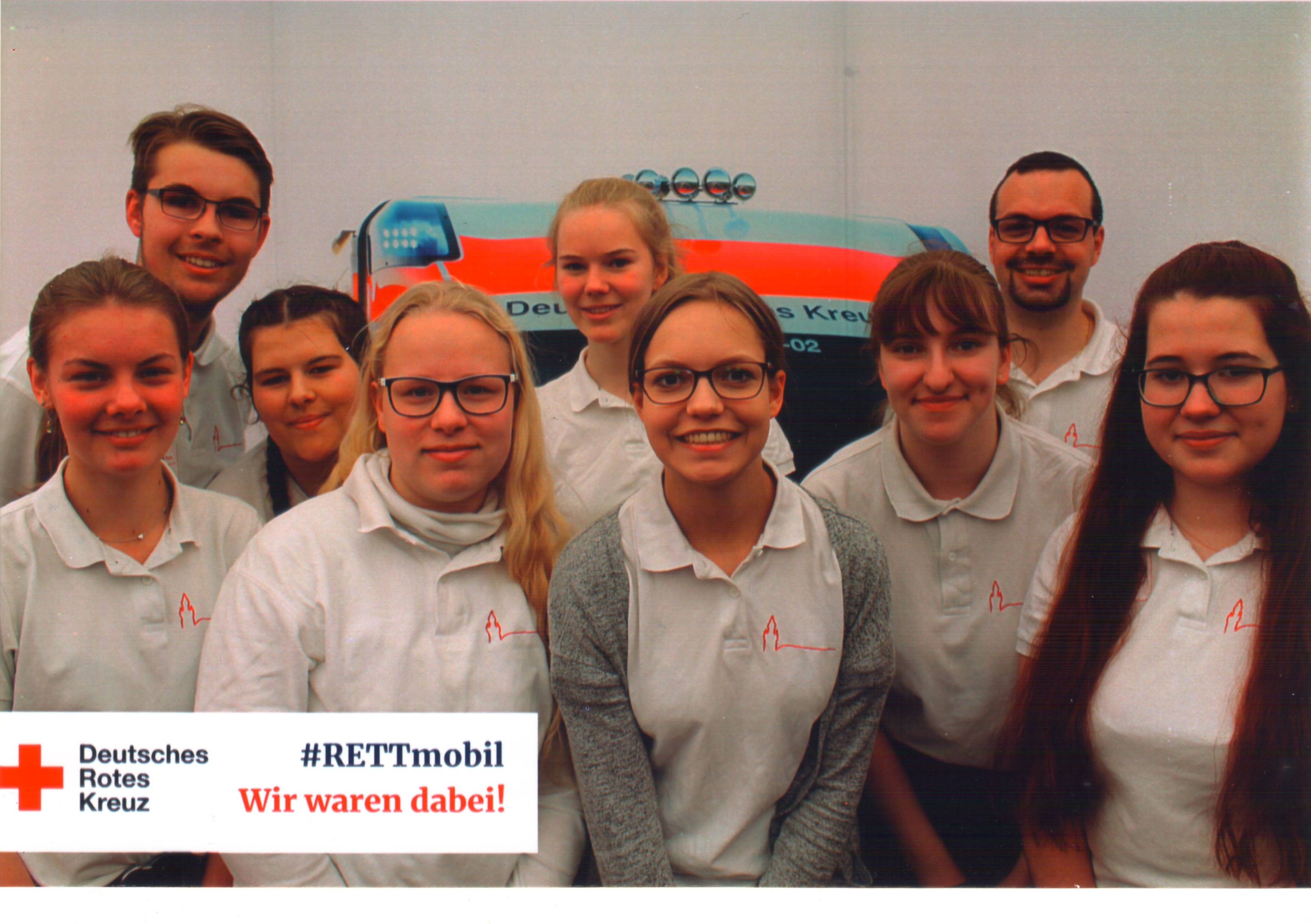 Um die in diesem Jahr geleistete Arbeit der Schulsanitäterinnen und Schulsanitäter des Burggymnasiums Friedberg zu würdigen und vertiefende fachliche Einblicke in die Welt des Rettungsdienstes und Katastrophenschutzes zu ermöglichen, besuchte der Schulsanitätsdienst am vergangenen Freitag, den 17. Mai die „Rettmobil“ in Fulda, die europäische Leitmesse für Rettung und Mobilität. Sichtlich erfreut und motiviert erkundeten die jungen Retterinnen und Retter die zahlreichen Informations- und Aktionsstände in den Messehallen und bestaunten die unterschiedlichsten Rettungsmittel und Fahrzeuge. Unter anderem in einem Reanimationswettbewerb der Firma „Laerdal“ stellten die engagierten Schülerinnen und Schüler Ihre bisher erlernten Fähigkeiten unter Beweis und erzielten teils deutlich bessere Punktwerte als alteingesessene Sanitätskräfte. Neben derartigen Leistungserfolgen und anderen vertiefenden Einblicken in den Bereichen Rettungs- und Tragetechnik sollten natürlich auch der Spaß und das Gemeinschaftserlebnis nicht zu kurz kommen. Nach einem gemeinsamen Mittagessen nahmen die Sanitäterinnen und Sanitäter an unterschiedlichen Gewinnspielen teil, ergatterten kleine Geschenke, Süßigkeiten und wie es sich für eine Messe gehört, fanden auch zahlreiche Kugelschreiber den Weg in den eigenen Rucksack. Am Abend zurück in Friedberg angekommen war für die Schülerinnen und Schüler klar, dass auch im kommenden Jahr 2020 der Besuch der „Rettmobil“ einen festen Platz in ihren Kalendern haben soll.