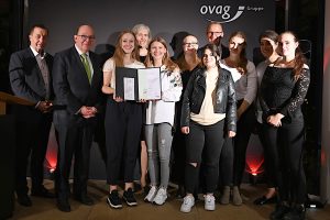 Gewinner des Gruppensonderpreises: Frau Lautenschläger mit Vertreterinnen ihres Q3 Leistungskurses Deutsch