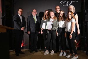 Pia Bonns Eltern nehmen ihre Auszeichnung als erneute Gewinnerin eines Einzelpreises entgegen, die aktuell als Au-pair in Paris ist.